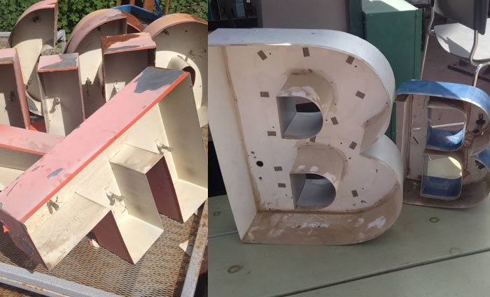Ben is planning on painting the exterior of these letters orange and mint green, the interiors white, and putting lights back into them. I can’t wait to see how they turn out.